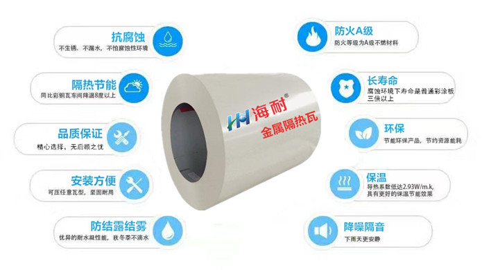 海耐納米隔熱瓦:隔熱是指能阻滯熱流傳遞的材料,又稱熱絕緣材料。隔熱材料分為多孔(內空)材料和熱反射材料兩類。海耐納米隔熱瓦(咨詢:0510-83326008)中間基板采用高強度金屬板,表面材料是可以選用具有很高的反射系數的能將熱量反射出去的鋁箔或鍍金屬的聚酯膜或具有特殊耐候的隔熱冷膜。如:人造地球衛星是在高溫、低溫交變的環境中運動,須使用高反射性能的多層隔熱、絕熱材料,一般是由幾十層鍍鋁薄膜、鍍鋁聚酯膜組成。海耐隔熱瓦成功解決了金屬單層屋面板隔熱問題,同時也標志著隔熱建筑屋面瓦材料發展的更高水平。海耐納米隔熱瓦適用場所:鋼結構設計圍護金屬彩涂板,對室內溫度舒適度要求高的各類工程使用。